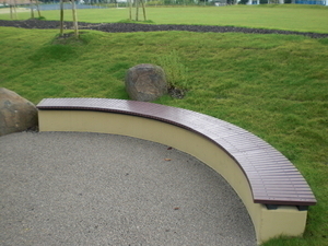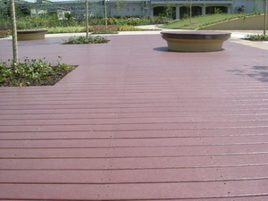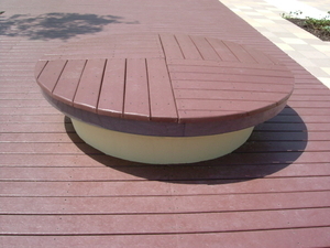 大阪府門真市にあるパナソニック電工㈱門真本社のはんえいの広場にエコマウッドデッキ、ベンチが採用されました。